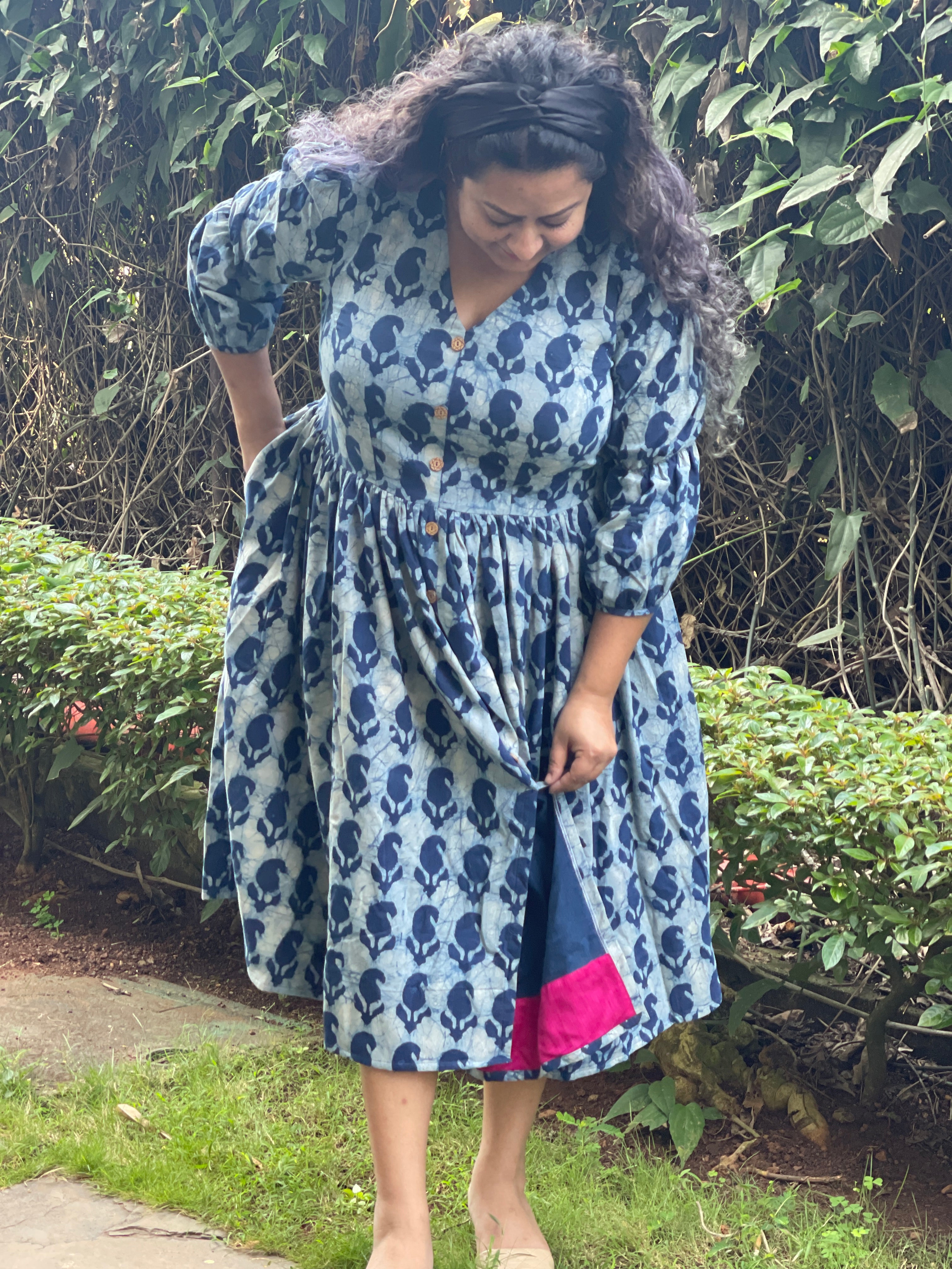 This elegant cotton dress has everything you need- pockets, an extra margin, cotton underling and most importantly COMFORT.