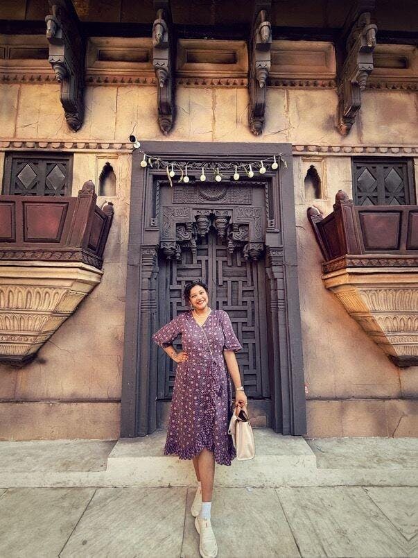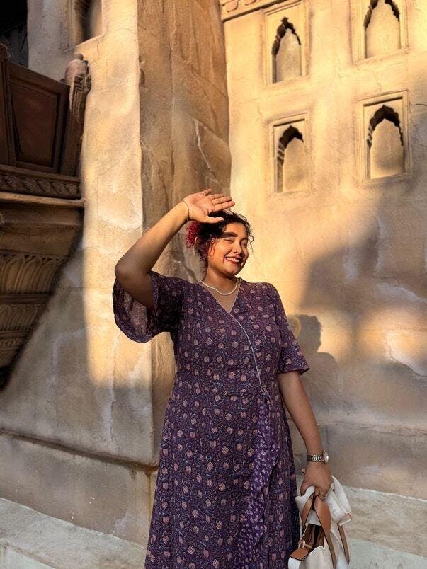 Purple Sanganeri Handblock Printed Wrap Style Cotton Dress